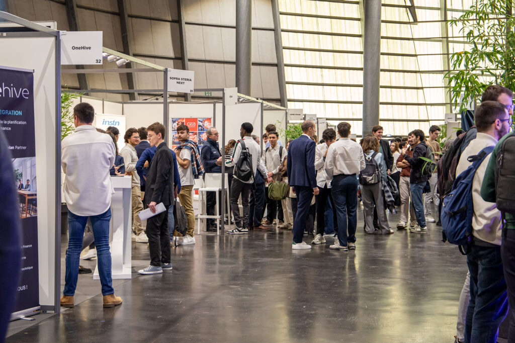 • Rencontres et échanges sur les stands : plus de 70 entreprises et start-ups étaient présentes, représentant une grande diversité de domaines : aéronautique, spatial, défense, chimie, industrie, énergie, construction, audit, conseil, finance, banque, assurance, informatique, logistique, transport, distribution et santé.