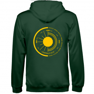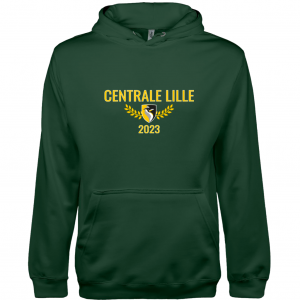 Les élèves du BDE de l’École Centrale de Lille vous proposent d’acheter leur pull de promotion. Il s’agit d’un sweat-shirt à capuche vert foncé, disponible du XS au 3XL.