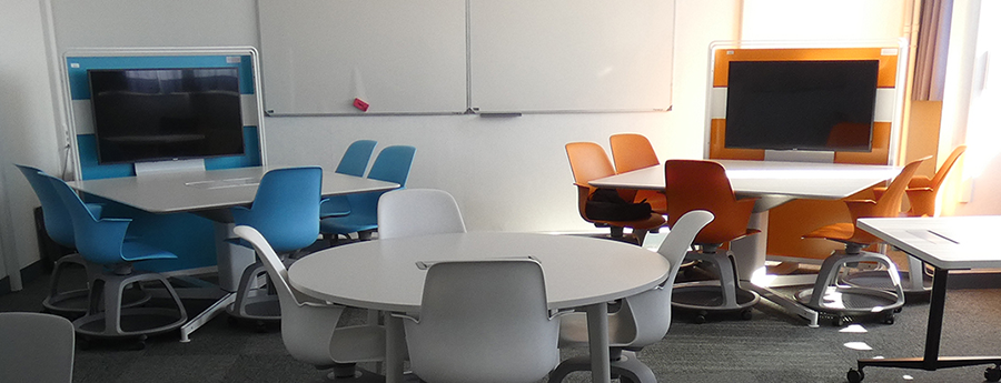 Room E-208 has been completely overhauled with a view to encouraging collaborative work. The room now comprises four student spaces and a teaching space located in the centre. Each space ...
