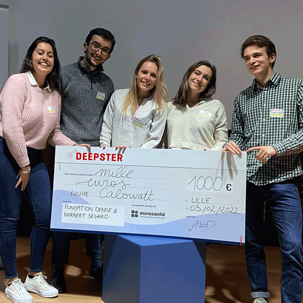 Coached by Virginie Devaux from the Valorisation and Innovation unit of Centrale Lille, the team won a €1,000 cheque offered by the Denise & Norbert Ségard Foundation during the regional Eurasanté programme.